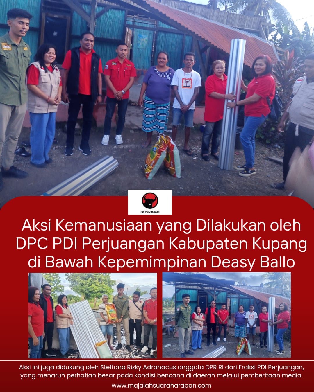 Majalah Suara Harapan – Aksi kemanusiaan yang dilakukan oleh DPC PDI Perjuangan Kabupaten Kupang di bawah kepemimpinan Deasy Ballo menunjukkan gerak cepat partai dalam merespons bencana yang menimpa Masyarakat khususnya di wilayah Kabupaten Kupang.