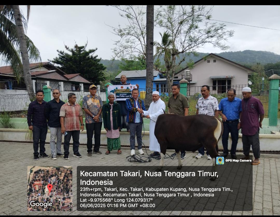 Majalah Suara Harapan – Bupati Kupang Yosef Lede menyerahkan hewan kurban di tiga Masjid di wilayah Kabupaten Kupang, pada perayaan Idul Adha 1446 H, Jumat (6/6/2025).