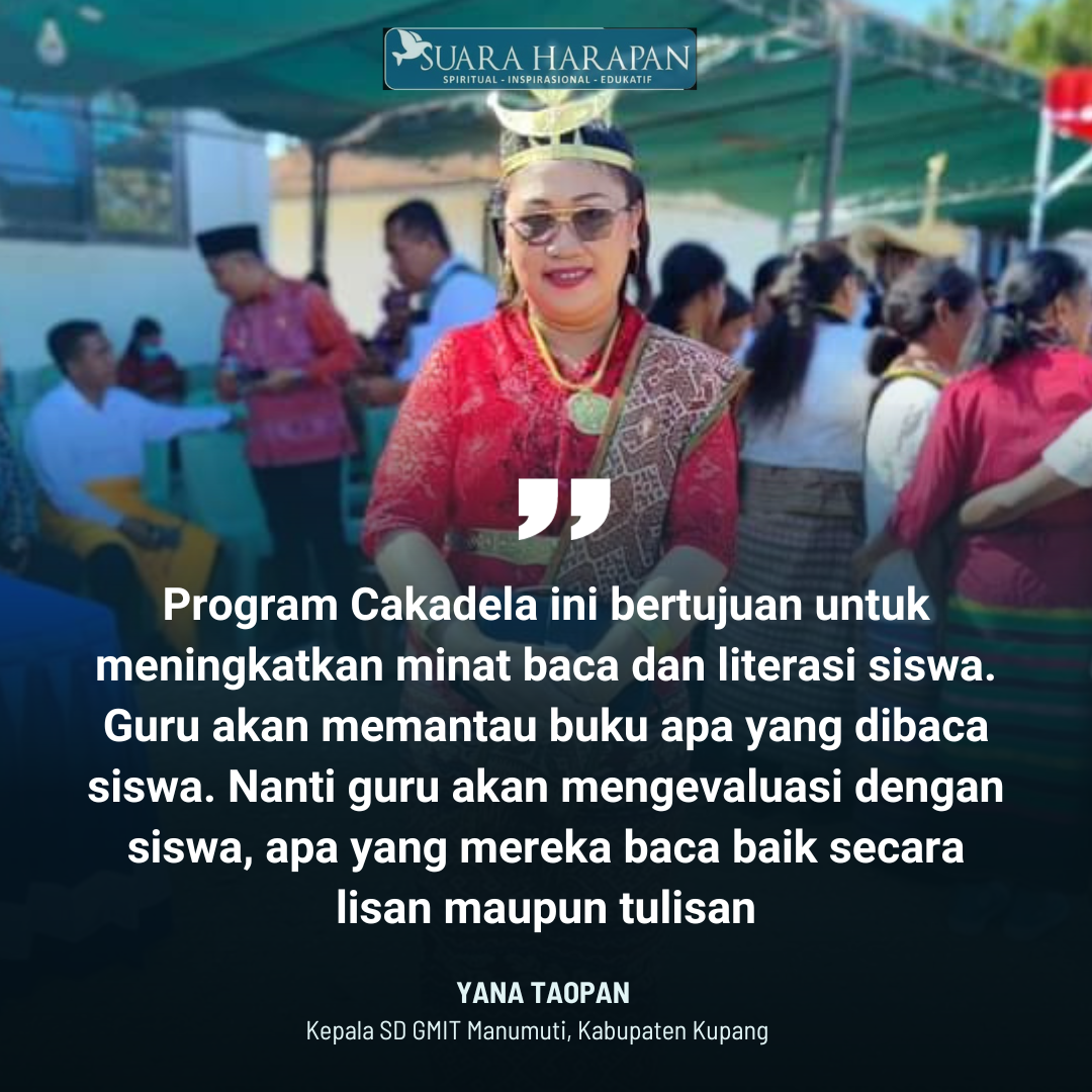 Kupang, Suara Harapan – Kepala SD GMIT Manumuti, Yana Taopan, mengungkapkan bahwa pihaknya terus berupaya meningkatkan mutu pendidikan di sekolah tersebut. Salah satu upaya yang dilakukan adalah dengan menerapkan program Cakadela (Membaca membuka jendela dunia).