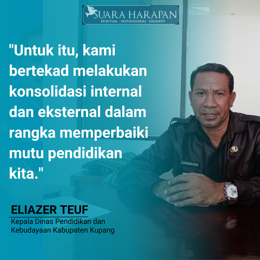 Oelamasi, Suara Harapan – Kepala Dinas Pendidikan dan Kebudayaan Kabupaten Kupang yang baru, Dr. Eliazer Teuf, S.Pd, M.Pd, bertekad mengubah rapor pendidikan kabupaten Kupang dari merah menjadi hijau pada November 2024.