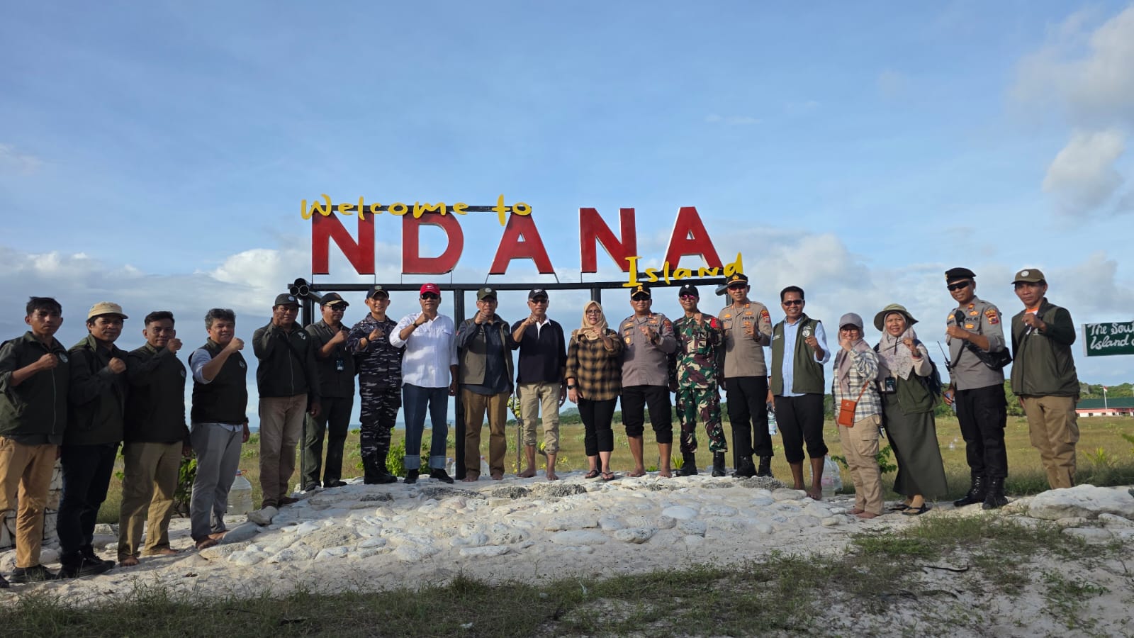 Kunjungan ini menjadi nyata kolaborasi lintas sektor. Selain otoritas konservasi pusat dan Kepala BBKSDA NTT, tampak hadir pula pengambil kebijakan daerah serta aparat keamanan yang menjaga garda depan. Sekda Kabupaten Rote Ndao, Kapolres Rote Ndao, hingga Komandan Pos Pengaman Pulau Terluar dan Komandan Pos TNI AL Pulau Ndana turut serta dalam peninjauan lapangan ini.