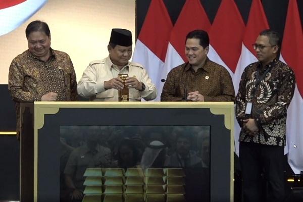 “Karena dari hulu hingga hilir emas akan diolah dan disimpan di dalam negeri, dan tidak mengalir ke luar negeri,” kataPrabowo.